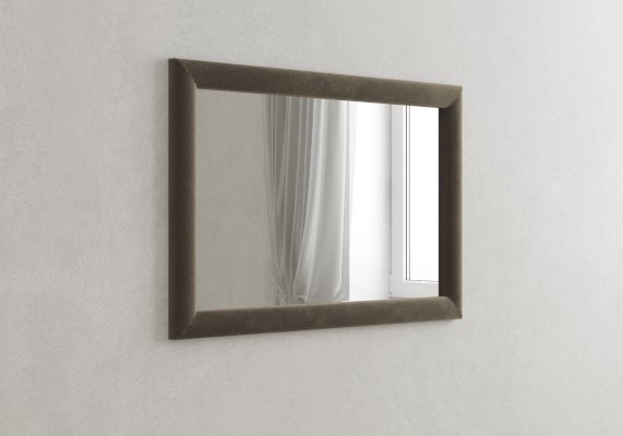 Зеркало в раме, покрытой обивочным материалом имеет универсальную форму и множество цветовых решений, что позволят подобрать вариант для любого интерьера. Зеркало идеально сочетается с любыми кроватями, представленными в интернет-магазине. Каркас выполнен из ДСП. Зеркало отлично подойдет для спальни любого размера, оно делает комнату больше, просторнее и светлее.