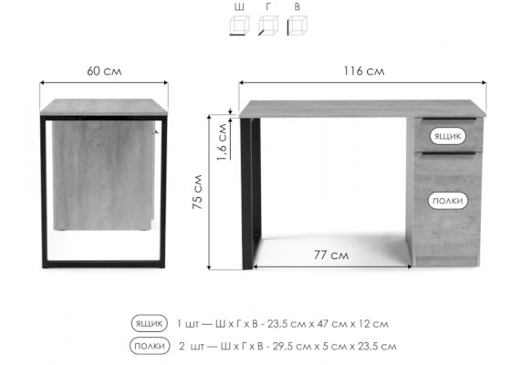 Конструкция полки / ящики для хранения