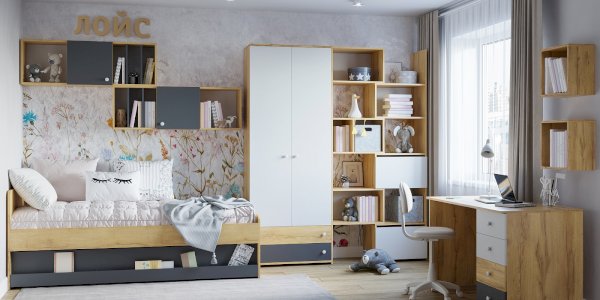 Цвет: Дуб золотистый/Графит/Белый