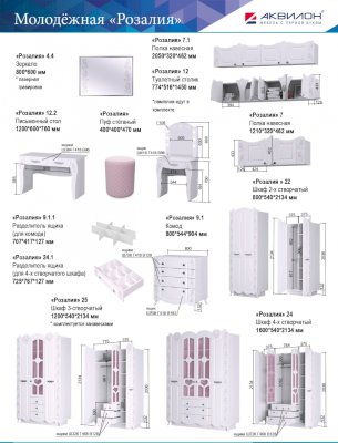 Мебель коллекции «Розалия» выполнена в романтичных тонах. Она подойдет как маленькой девочке, так и девочке-подростку. Классический дизайн комнаты создает сдержанный и изысканный интерьер. В детской Детская комнате особое место занимает зона отдыха. Здесь используются встроенные светильники. Именно поэтому возле кровати необходимо предусмотреть наличие розетки. Мебель сделана из экологически чистых материалов и соответствует всем стандартам безопасности. С помощью модульной детской «Розалия» легко создать уютное пространство для игр, учебы, творчества и отдыха ребенка.