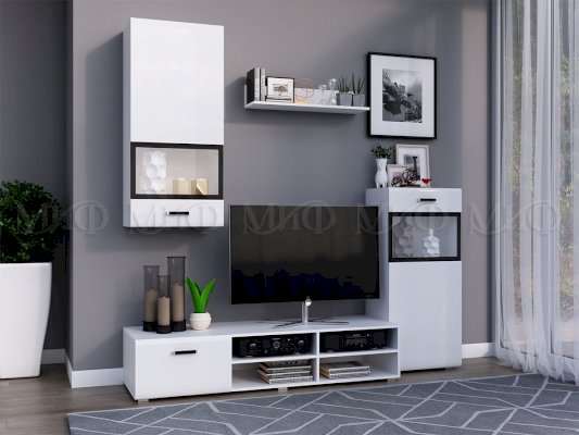 Глянцевая гостиная «Рио» впишется в пространство любой комнаты и любого стиля. Модный блеск фасадов зрительно делает комнату просторнее и светлее. Подобная мебель отличается оригинальным модулями, позволяющими красиво расставить мебель.