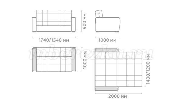 Размер дивана : 1740*1000*900 мм