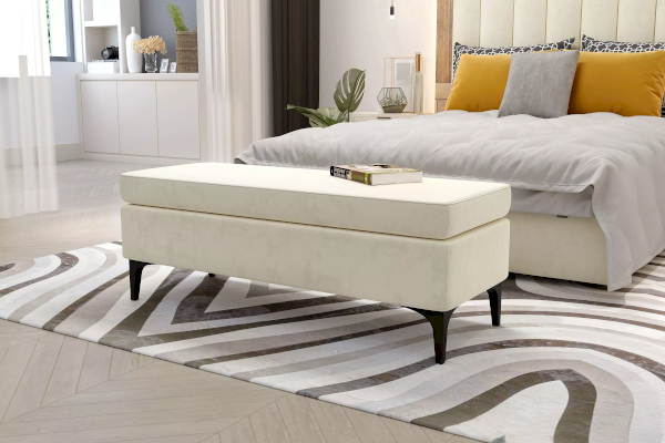 Интерьерные пуфы ОАЗИС - классическая модель, которая представляет собой мягкую скамейку без спинки и устанавливается у нижней части кровати. На такой предмет интерьера можно присесть, поставить ноутбук или поднос с завтраком (сидушка несъемная).