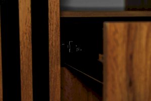 Прикроватная тумбочка содержит три отделения – открытую полку и два выдвижных ящика. Столешница имеет оптимальную высоту – такую, чтобы можно удобно и легко дотянуться и положить вещь, лежа в кровати. На тумбу можно поставить лампу, в открытую полку положить книгу, телефон, планшет – они будут одновременно и под рукой, но в то же время не будут вам мешать. В выдвижных ящиках хорошо хранить документы. Такие тумбочки обычно приобретают в паре – для нее и для него – и ставят по обе стороны двуспальной кровати. Если тумбочка женская, в выдвижные ящики размещают духи, косметику, дамские мелочи, если мужская – бумаги, ежедневники, гаджеты.