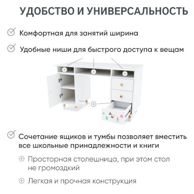 • Конструкция стола отвечает всем требованиям ГОСТ