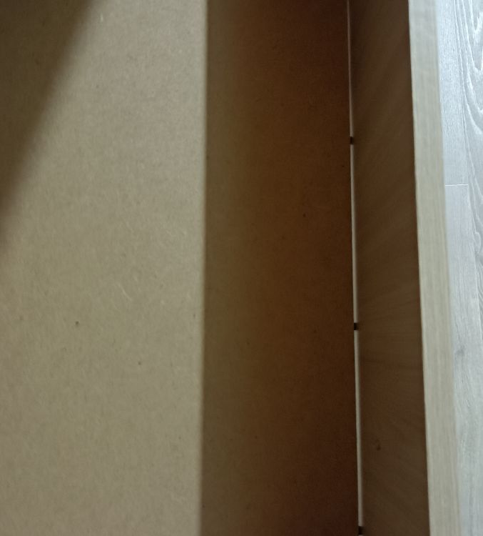 Задняя стенка снизу ни к чему не крепится. Странная конструкция дна ящиков (см. фото).