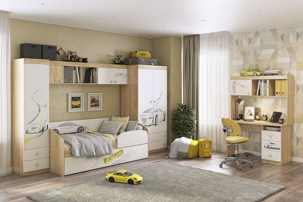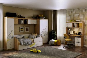 Вместительный шкаф «Форсаж» – мечта каждого мальчика. Длинная штанга для одежды и 2-а больших выдвижных ящика для белья - отличное решение для детской. Эффектный принтерный рисунок на фасадах выдержан в общем стилистическом решении. Рисунок устойчив к истиранию и ультрафиолету.