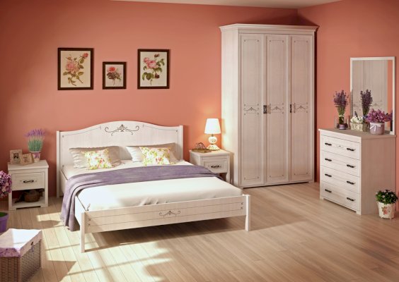 Двуспальная кровать из коллекции «Афродита» привнесет в Вашу спальную комнату легкость и очарование прованса. Простая и при этом утонченная, она создаст романтичное настроение и воздушный облик Вашей спальни. Обрамление на спинке и подножии кровати в виде элегантного декора придает дополнительную изящность, а простые ножки не утяжеляют ее внешний вид.