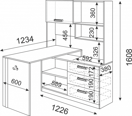 Глубина: 1234 мм