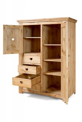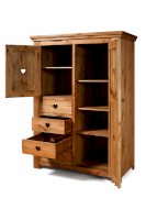 За дверкой слева полка. За дверкой справа 3 полки. 4 выдвижных ящика