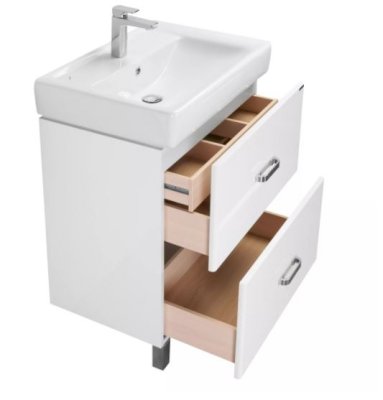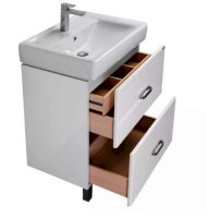 Современная лаконичная модель тумбы AQUATON Америна 80 Н шириной 80 см с двумя внешними ящиками и одним встроенным выполнена в белоснежном глянцевом цвете.