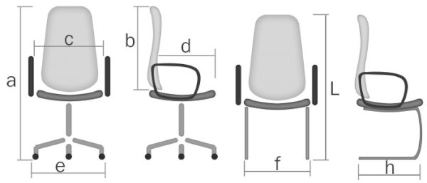 вариант исполнения | а.высота | b.спинка | c.ширина | d.глубина | e.диаметр крест. | L.высота | f.ширина | h.глубина |