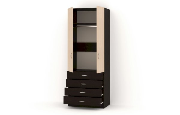 Данное изображение представлено в следующих цветах ЛДСП: корпус - Венге Цаво, фасады - Дуб молочный / Венге Цаво.
