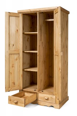 Наполнение: За дверкой слева 3 полки, за дверкой справа съёмная штанга. Два выдвижных ящика (без направляющих, на деревянных полозьях)