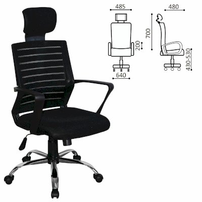 Высокая сетчатая спинка и подголовник, выраженная поддержка поясницы, прочные пластиковые подлокотники, хромированное пятилучие гарантируют комфортное долгосрочное использование.